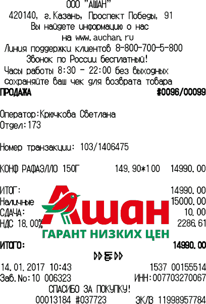 Как вернуть товар без кассового чека, возникнет вопрос, если выявлен дефект, а чек утерян. В этом случае Вам необходимо обратиться к нам с просьбой восстановить кассовые чеки в Казани.