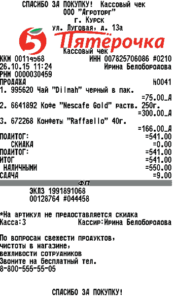 » » Кассовые чеки